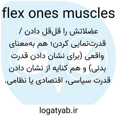 📌 قدرت یا توان خود را به نمایش گذاشتن، مانند «پسرها عاشق نمایش عضلات خود هستند»، یا «رئیس جدید بخش تصمیم گرفته است عضلات خود را به نمایش بگذارد». [اوایل دهه 1900]