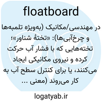 در مهندسی/مکانیک (به‌ویژه تلمبه‌ها و چرخ‌آبی‌ها): «تختهٔ شناور»؛ تخته‌هایی که با فشار آب حرکت کرده و نیروی مکانیکی ایجاد می‌کنند، یا برای کنترل سطح آب به کار می‌روند (معنی دقیق بافت‌محور است).