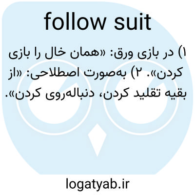 📌 تقلید کردن یا انجام دادن کاری که شخص دیگری انجام داده است، مانند اینکه بیل تصمیم گرفت بقیه روز را آنجا بماند و مری هم از او پیروی کرد. این اصطلاح از بازی‌های کارتی گرفته شده است که در آن باید کارتی از همان خال کارت اول بازی کرد. [اواسط دهه ۱۸۰۰]