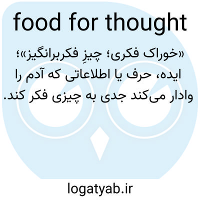 📌 ایده یا مسئلهای برای تأمل، مانند «آن پیشنهاد جالب شما به ما خوراک فکری داده است». این عبارت استعاری که ایده هضم غذا را از معده به تعمق در مورد چیزی در ذهن منتقل میکند، به اواخر دهه ۱۸۰۰ میلادی برمیگردد، اگرچه این ایده حداقل سه قرن قبلتر نیز تا حدودی متفاوت بیان شده بود.