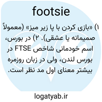 ۱) «بازی کردن با پا زیر میز» (معمولاً صمیمانه یا عشقی). ۲) در بورس، اسم خودمانی شاخص FTSE در بورس لندن، ولی در زبان روزمره بیشتر معنای اول مد نظر است.