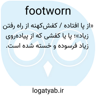 «از پا افتاده / کفش‌کهنه از راه رفتن زیاد»؛ پا یا کفشی که از پیاده‌روی زیاد فرسوده و خسته شده است.