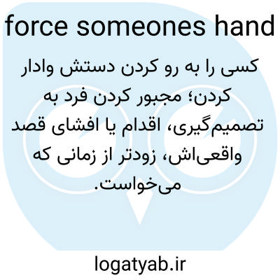 📌 کسی را مجبور کردن به عمل یا صحبتی زودهنگام یا برخلاف میلش. برای مثال، او نمیخواست همان موقع تصمیم بگیرد، اما تخته او را مجبور به این کار کرد. این عبارت احتمالاً به دست (کارتها) در بازیهایی مانند ویست یا پوکر اشاره دارد که در آن بازیکن مجبور میشود کارتی از دستش بازی کند یا دستش را رو کند. [اواسط دهه ۱۸۰۰]