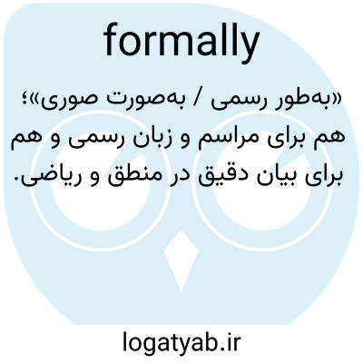 «به‌طور رسمی / به‌صورت صوری»؛ هم برای مراسم و زبان رسمی و هم برای بیان دقیق در منطق و ریاضی.