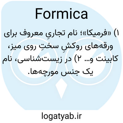 ۱) «فرمیکا»؛ نام تجاریِ معروف برای ورقه‌های روکشِ سختِ روی میز، کابینت و… ۲) در زیست‌شناسی، نام یک جنس مورچه‌ها.