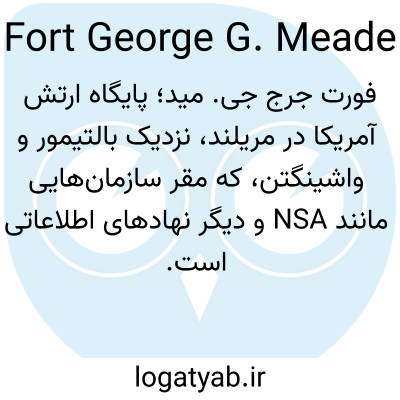 فورت جرج جی. مید؛ پایگاه ارتش آمریکا در مریلند، نزدیک بالتیمور و واشینگتن، که مقر سازمان‌هایی مانند NSA و دیگر نهادهای اطلاعاتی است.