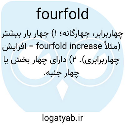 چهاربرابر، چهارگانه؛ ۱) چهار بار بیشتر (مثلاً fourfold increase = افزایش چهاربرابری). ۲) دارای چهار بخش یا چهار جنبه.