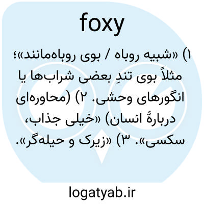 ۱) «شبیه روباه / بوی روباه‌مانند»؛ مثلاً بوی تندِ بعضی شراب‌ها یا انگورهای وحشی. ۲) (محاوره‌ای دربارهٔ انسان) «خیلی جذاب، سکسی». ۳) «زیرک و حیله‌گر».