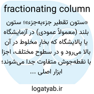 📌 شیمی، استوانه عمودی بلندی که در تقطیر جزء به جزء استفاده میشود و در آن رفلاکس داخلی امکان جداسازی بخشهای با نقطه جوش بالا و پایین را فراهم میکند.