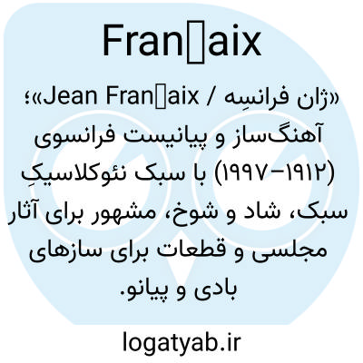 «ژان فرانسِه / Jean Françaix»؛ آهنگ‌ساز و پیانیست فرانسوی (۱۹۱۲–۱۹۹۷) با سبک نئوکلاسیکِ سبک، شاد و شوخ، مشهور برای آثار مجلسی و قطعات برای سازهای بادی و پیانو.