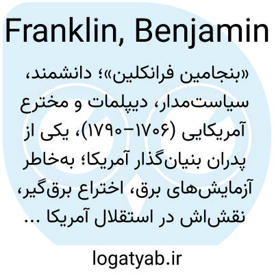 📌 میهنپرست، دیپلمات، نویسنده، چاپخانهدار، دانشمند و مخترع در قرن هجدهم؛ یکی از پدران بنیانگذار ایالات متحده. او از محققان مهم اولیه در زمینه برق بود و مدل مدرن جریان الکتریکی (همچنین به جریان مراجعه کنید) را پیشنهاد داد. او همچنین با پرواز دادن یک بادبادک در رعد و برق و اجازه دادن به برخورد صاعقه به آن، نشان داد که رعد و برق، الکتریسیته است. فرانکلین از این کشف برای اختراع میله برقگیر استفاده کرد. او اختراعات دیگری نیز مانند عینک دو کانونی و اجاق گاز کارآمد فرانکلین را نیز انجام داد. از جمله نوشتههای قابل توجه او میتوان به «زندگینامه بنجامین فرانکلین» و «سالنامه فقیر ریچارد» اشاره کرد. او از امضاکنندگان اعلامیه استقلال بود و از طرف دولت تازه تأسیس ایالات متحده با فرانسه و بریتانیا مذاکره کرد. در اواخر عمرش، در کنوانسیون قانون اساسی شرکت کرد.