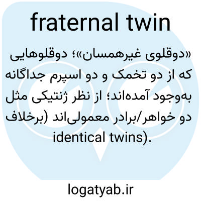 📌 یکی از دو دوقلو، که لزوماً شبیه یکدیگر یا از یک جنس نیستند و از دو تخمک بارور شده جداگانه به وجود می‌آیند.