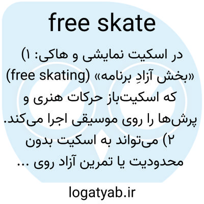 در اسکیت نمایشی و هاکی: ۱) «بخش آزادِ برنامه» (free skating) که اسکیت‌باز حرکات هنری و پرش‌ها را روی موسیقی اجرا می‌کند. ۲) می‌تواند به اسکیت بدون محدودیت یا تمرین آزاد روی پیست هم گفته شود.