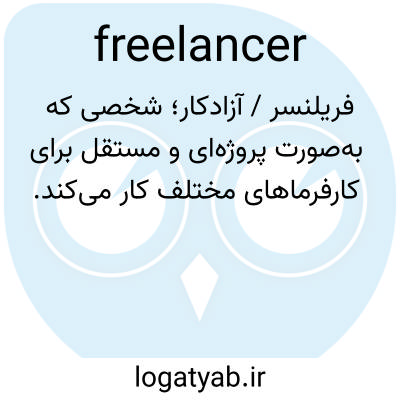 📌 شخصی که به عنوان نویسنده، طراح، مجری یا مانند آن کار میکند و به جای کار کردن با حقوق منظم برای یک کارفرما، آثار یا خدمات خود را بر اساس ساعت، روز، شغل و غیره میفروشد.