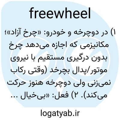 ۱) در دوچرخه و خودرو: «چرخ آزاد»؛ مکانیزمی که اجازه می‌دهد چرخ بدون درگیری مستقیم با نیروی موتور/پدال بچرخد (وقتی رکاب نمی‌زنی ولی دوچرخه هنوز حرکت می‌کند). ۲) فعل: «بی‌خیال و بدون قید حرکت کردن/زندگی کردن».