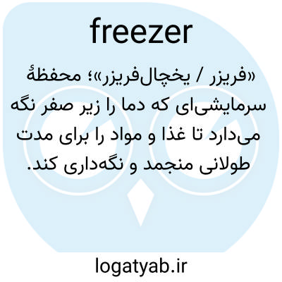 📌 یخچال، محفظه یخچال، کابینت یا اتاقی که دمای آن در دمای 32 درجه فارنهایت (0 درجه سانتیگراد) یا کمتر نگه داشته میشود و مخصوصاً برای نگهداری و ذخیره مواد غذایی استفاده میشود.
