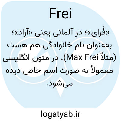 «فْرای»؛ در آلمانی یعنی «آزاد»؛ به‌عنوان نام خانوادگی هم هست (مثلاً Max Frei). در متون انگلیسی معمولاً به صورت اسم خاص دیده می‌شود.