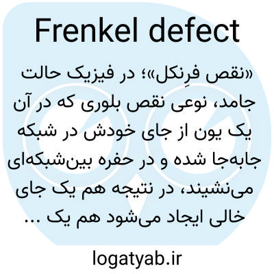 📌 فیزیک، نقصی در بلور که در آن یک یون شبکه به یک موقعیت بین‌نشینی منتقل شده و یک فضای خالی در شبکه باقی می‌گذارد.