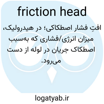 📌 (در یک سیستم هیدرولیک) بخشی از هد آب یا مایع دیگر که نشاندهنده انرژی است که سیستم از طریق اصطکاک با دیوارههای مجراها یا کانالها و از طریق گرمایش ناشی از جریان آشفته، تلف میکند.