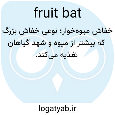 📌 هر خفاش میوهخوار، به ویژه از زیرراسته مگاچیروپتِرا، از مناطق گرمسیری در سراسر دنیای قدیم، که معمولاً گوشهای راست و گربهمانند و چشمان بزرگی دارد که برای دید در شب سازگار شدهاند، و یا بدون دم هستند یا دارای دمی ابتدایی میباشند، گونههای متعدد آن طول بالهایشان از 10 اینچ تا 5 فوت (25 سانتیمتر تا 1.5 متر) متغیر است.