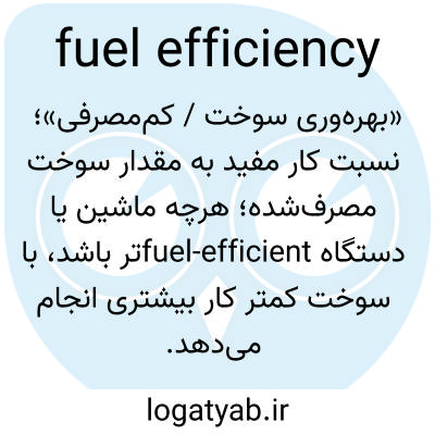 «بهره‌وری سوخت / کم‌مصرفی»؛ نسبت کار مفید به مقدار سوخت مصرف‌شده؛ هرچه ماشین یا دستگاه fuel-efficient‌تر باشد، با سوخت کمتر کار بیشتری انجام می‌دهد.