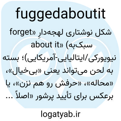 شکل نوشتاری لهجه‌دارِ «forget about it» (به‌سبک نیویورکی/ایتالیایی‌-آمریکایی)؛ بسته به لحن می‌تواند یعنی «بی‌خیال»، «محاله»، «حرفش رو هم نزن»، یا برعکس برای تأیید پرشور «اصلاً حرفش هم نزن، عالیه!».