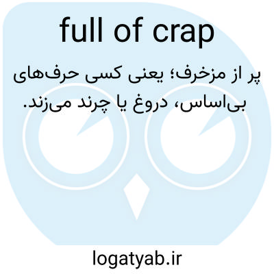 📌 همچنین، پر از مزخرفات؛ پر از مزخرفات. یاوه‌گویی یا چرت و پرت گفتن، مانند «او نمی‌داند درباره چه چیزی صحبت می‌کند؛ او پر از مزخرفات است». همه این عبارات که به مدفوع اشاره دارند، رکیک تلقی می‌شوند. [نیمه اول دهه 1900] همچنین ببینید: «پر از آن»، تعریف 2؛ «هوای گرم».