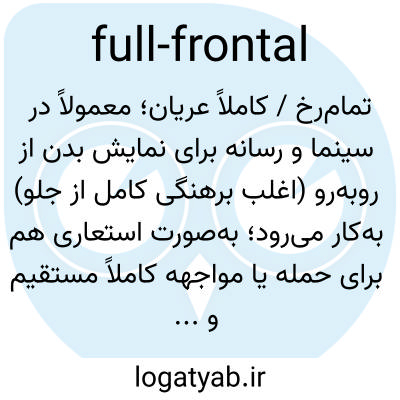 تمام‌رخ / کاملاً عریان؛ معمولاً در سینما و رسانه برای نمایش بدن از روبه‌رو (اغلب برهنگی کامل از جلو) به‌کار می‌رود؛ به‌صورت استعاری هم برای حمله یا مواجهه کاملاً مستقیم و بی‌پرده استفاده می‌شود.