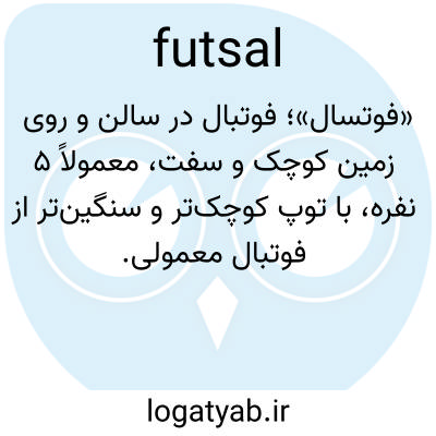 «فوتسال»؛ فوتبال در سالن و روی زمین کوچک و سفت، معمولاً ۵ نفره، با توپ کوچک‌تر و سنگین‌تر از فوتبال معمولی.