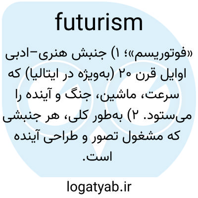📌 (اغلب با حرف بزرگ اول نام)، سبکی از هنر، ادبیات، موسیقی و غیره، و نظریهای در باب هنر و زندگی که در آن خشونت، قدرت، سرعت، مکانیزاسیون یا ماشینآلات، و خصومت با گذشته یا با اشکال سنتی بیان، مورد حمایت یا تصویر قرار میگرفت.
