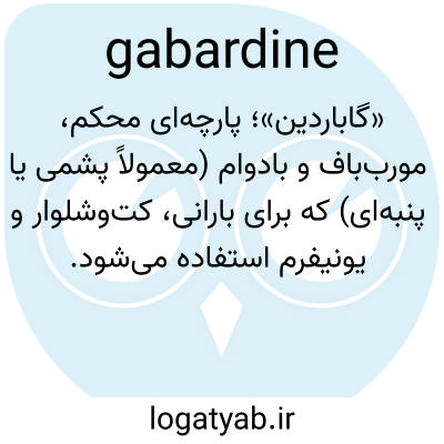 «گاباردین»؛ پارچه‌ای محکم، مورب‌باف و بادوام (معمولاً پشمی یا پنبه‌ای) که برای بارانی، کت‌وشلوار و یونیفرم استفاده می‌شود.
