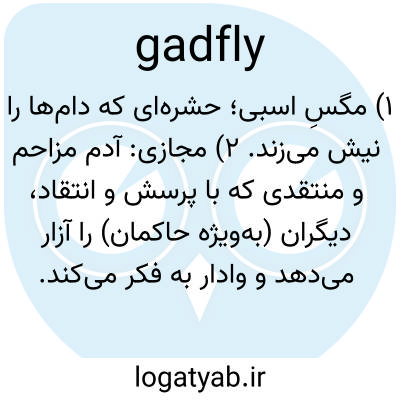 ۱) مگسِ اسبی؛ حشره‌ای که دام‌ها را نیش می‌زند. ۲) مجازی: آدم مزاحم و منتقدی که با پرسش و انتقاد، دیگران (به‌ویژه حاکمان) را آزار می‌دهد و وادار به فکر می‌کند.