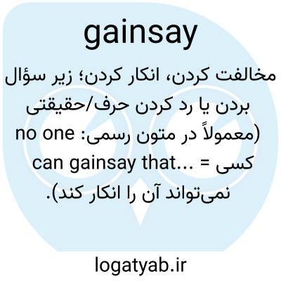 مخالفت کردن، انکار کردن؛ زیر سؤال بردن یا رد کردن حرف/حقیقتی (معمولاً در متون رسمی: no one can gainsay that... = کسی نمی‌تواند آن را انکار کند).