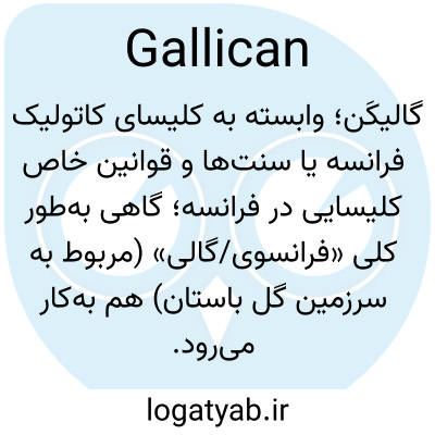 گالیکَن؛ وابسته به کلیسای کاتولیک فرانسه یا سنت‌ها و قوانین خاص کلیسایی در فرانسه؛ گاهی به‌طور کلی «فرانسوی/گالی» (مربوط به سرزمین گل باستان) هم به‌کار می‌رود.
