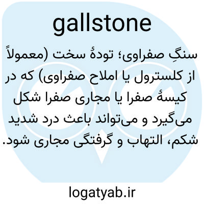 📌 توده‌ای غیرطبیعی شبیه سنگ، معمولاً از جنس کلسترول، که در کیسه صفرا یا مجاری صفراوی تشکیل می‌شود.