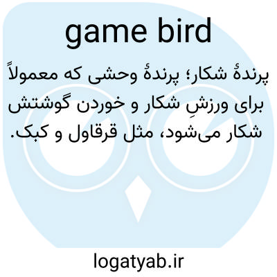 📌 هر پرنده‌ای که عمدتاً برای ورزش شکار می‌شود، مانند بلدرچین یا قرقاول، به ویژه پرنده‌ای که تحت حمایت قوانین شکار است.