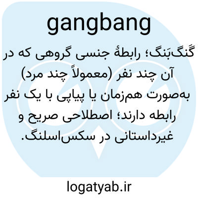 گَنگ‌بَنگ؛ رابطهٔ جنسی گروهی که در آن چند نفر (معمولاً چند مرد) به‌صورت هم‌زمان یا پیاپی با یک نفر رابطه دارند؛ اصطلاحی صریح و غیرداستانی در سکس‌اسلنگ.