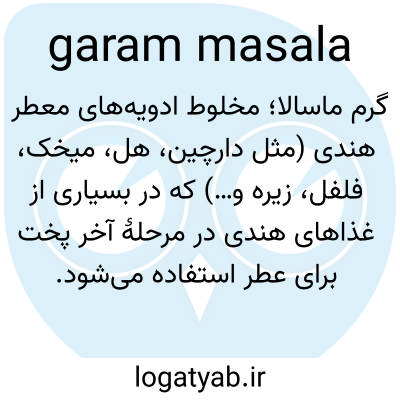 📌 مخلوطی معطر از ادویههای آسیابشده که در آشپزی هندی استفاده میشود و معمولاً حاوی فلفل سیاه، هل، دارچین، میخک، گشنیز، جوز هندی و زردچوبه است.