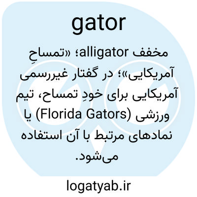 مخفف alligator؛ «تمساحِ آمریکایی»؛ در گفتار غیررسمی آمریکایی برای خودِ تمساح، تیم ورزشی (Florida Gators) یا نمادهای مرتبط با آن استفاده می‌شود.