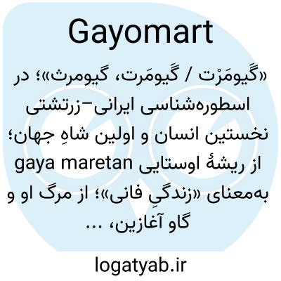 «گَیومَرْت / گَیومَرت، گیومرث»؛ در اسطوره‌شناسی ایرانی–زرتشتی نخستین انسان و اولین شاهِ جهان؛ از ریشهٔ اوستایی gaya maretan به‌معنای «زندگیِ فانی»؛ از مرگ او و گاو آغازین، جهان گیاهی و انسانی پدیدار می‌شود.