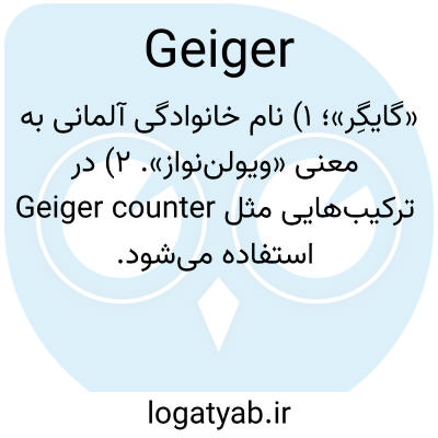«گایگِر»؛ ۱) نام خانوادگی آلمانی به معنی «ویولن‌نواز». ۲) در ترکیب‌هایی مثل Geiger counter استفاده می‌شود.
