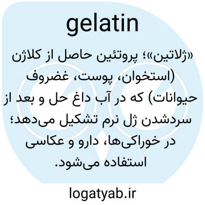 «ژلاتین»؛ پروتئین حاصل از کلاژن (استخوان، پوست، غضروف حیوانات) که در آب داغ حل و بعد از سردشدن ژل نرم تشکیل می‌دهد؛ در خوراکی‌ها، دارو و عکاسی استفاده می‌شود.