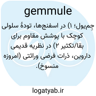 📌 جانورشناسی، تودهای از سلولها که به صورت غیرجنسی تولید میشوند و قادر به تبدیل شدن به یک حیوان، مانند اسفنج آب شیرین، هستند.