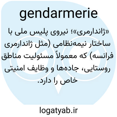«ژاندارمری»؛ نیروی پلیس ملی با ساختار نیمه‌نظامی (مثل ژاندارمری فرانسه) که معمولاً مسئولیت مناطق روستایی، جاده‌ها و وظایف امنیتی خاص را دارد.