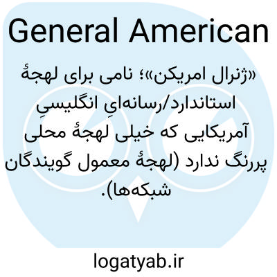 📌 هر شکلی از گویش انگلیسی آمریکایی که ویژگیهای منطقهای کمی از خود نشان میدهد، معمولاً شامل همه گویشها به جز شرق نیوانگلند، شهر نیویورک، جنوب و جنوب میدلند (دیگر کاربرد فنی ندارد). GA