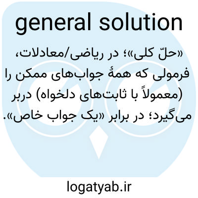 «حلّ کلی»؛ در ریاضی/معادلات، فرمولی که همهٔ جواب‌های ممکن را (معمولاً با ثابت‌های دلخواه) دربر می‌گیرد؛ در برابر «یک جواب خاص».