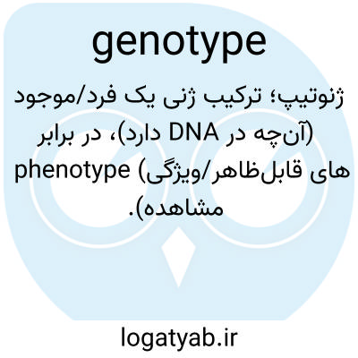 📌 ساختار ژنتیکی یک موجود زنده یا گروهی از موجودات زنده با اشاره به یک ویژگی واحد، مجموعهای از ویژگیها یا کل مجموعه ای از ویژگیها.