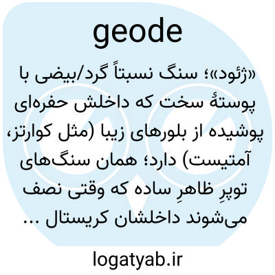«ژئود»؛ سنگ نسبتاً گرد/بیضی با پوستهٔ سخت که داخلش حفره‌ای پوشیده از بلورهای زیبا (مثل کوارتز، آمتیست) دارد؛ همان سنگ‌های توپرِ ظاهرِ ساده که وقتی نصف می‌شوند داخلشان کریستال است.