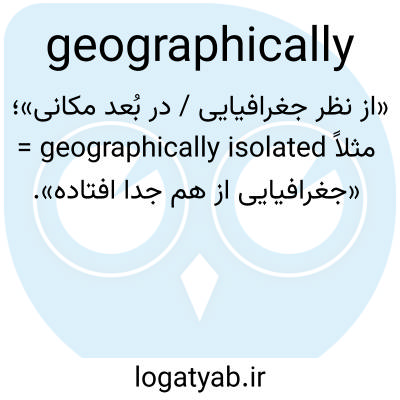 «از نظر جغرافیایی / در بُعد مکانی»؛ مثلاً geographically isolated = «جغرافیایی از هم جدا افتاده».