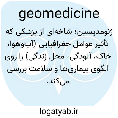 ژئومدیسین؛ شاخه‌ای از پزشکی که تأثیر عوامل جغرافیایی (آب‌وهوا، خاک، آلودگی، محل زندگی) را روی الگوی بیماری‌ها و سلامت بررسی می‌کند.